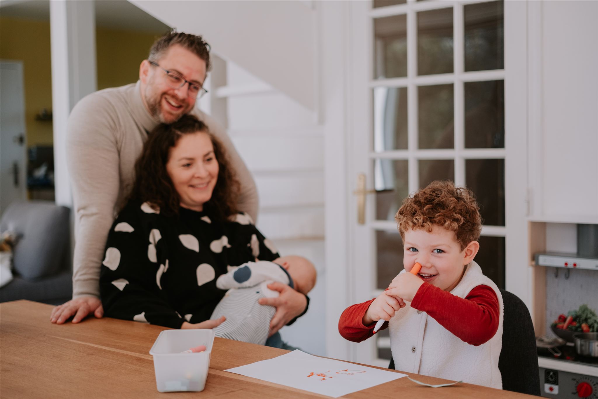 Dans la vie d’une famille il se passe milles choses à la fois. Un câlin, une grimace, une trace de chocolat sur la joue, une petite main qui se saisit d’une fleur…