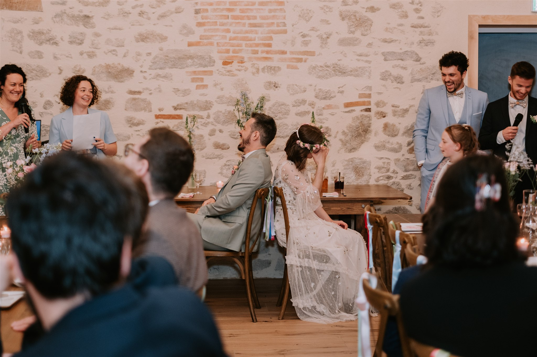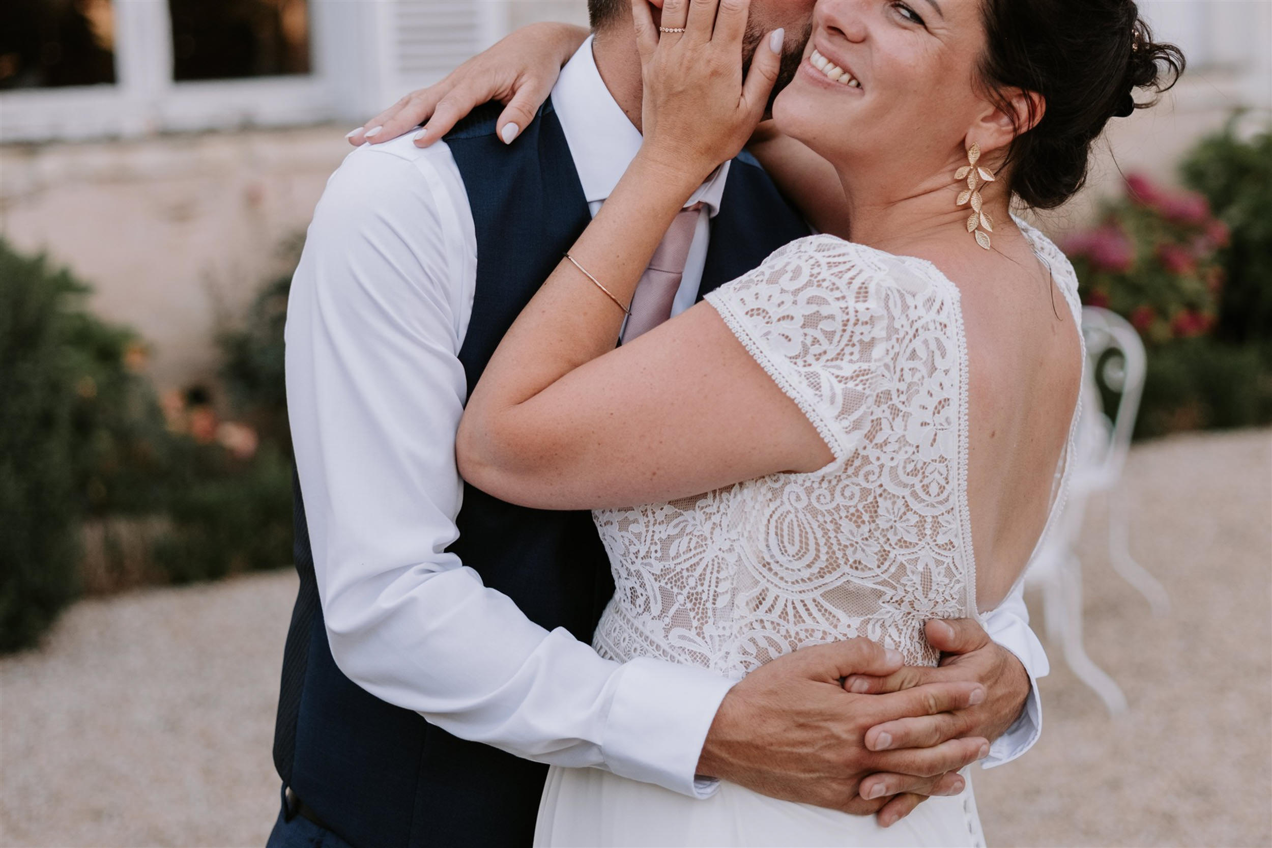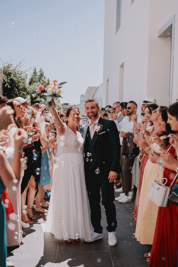 Par respect pour le droit à l’image des invités, les photos que vous découvrirez ici sont centrées sur les mariés. Mais ne vous inquiétez pas, les proches ont évidemment toute leur place dans les photos du jour J !