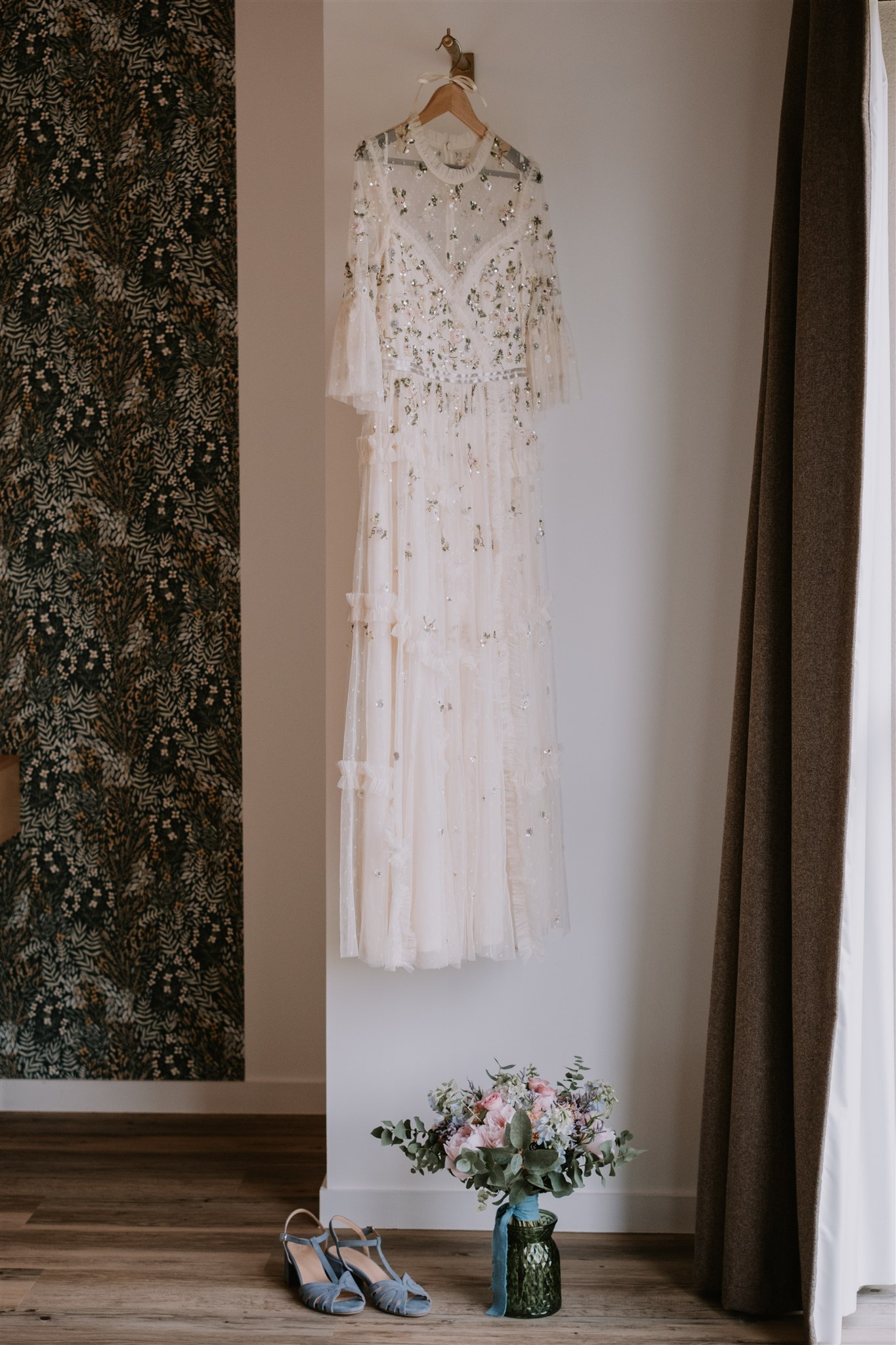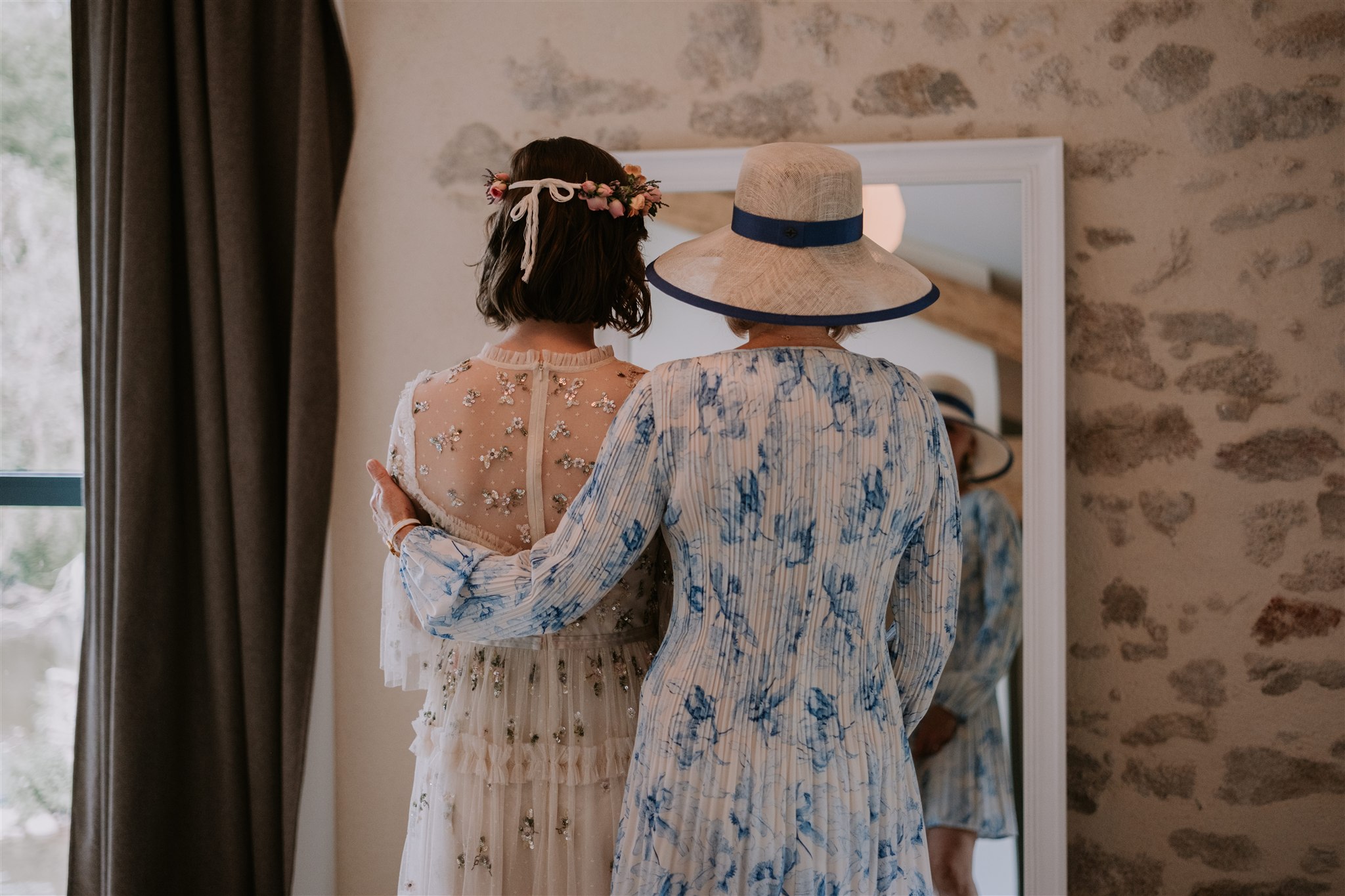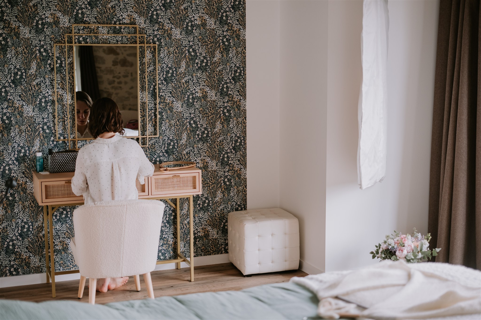 La mariée du jour, Clem, s’est préparée dans la suite nuptiale du Moulin de Grenon. Située au dernier étage, celle-ci possède une grande fenêtre qui lui offre une vue magnifique sur la Sèvre, ainsi qu’une lumière qui se prête parfaitement à de belles photos.