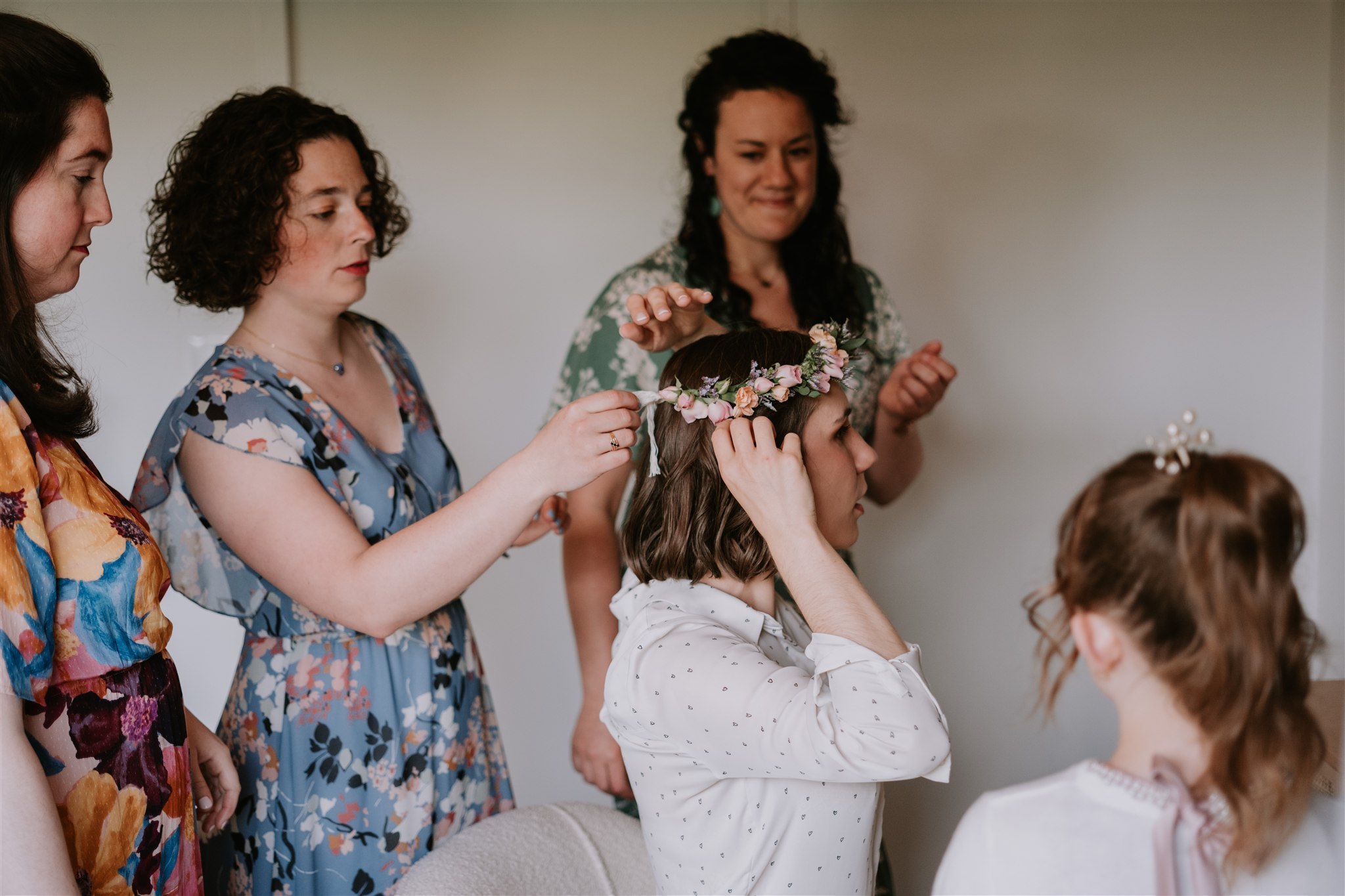 Pour la première partie de ses préparatifs, Clem avait choisi d’être entourée de ses meilleures amies, mais celles-ci sont sorties avant l’enfilage de la robe. En effet, la mariée avait décidé de garder la surprise pour tout le monde, à l’exception de sa maman, qui l’avait accompagnée pour choisir sa tenue de mariée.