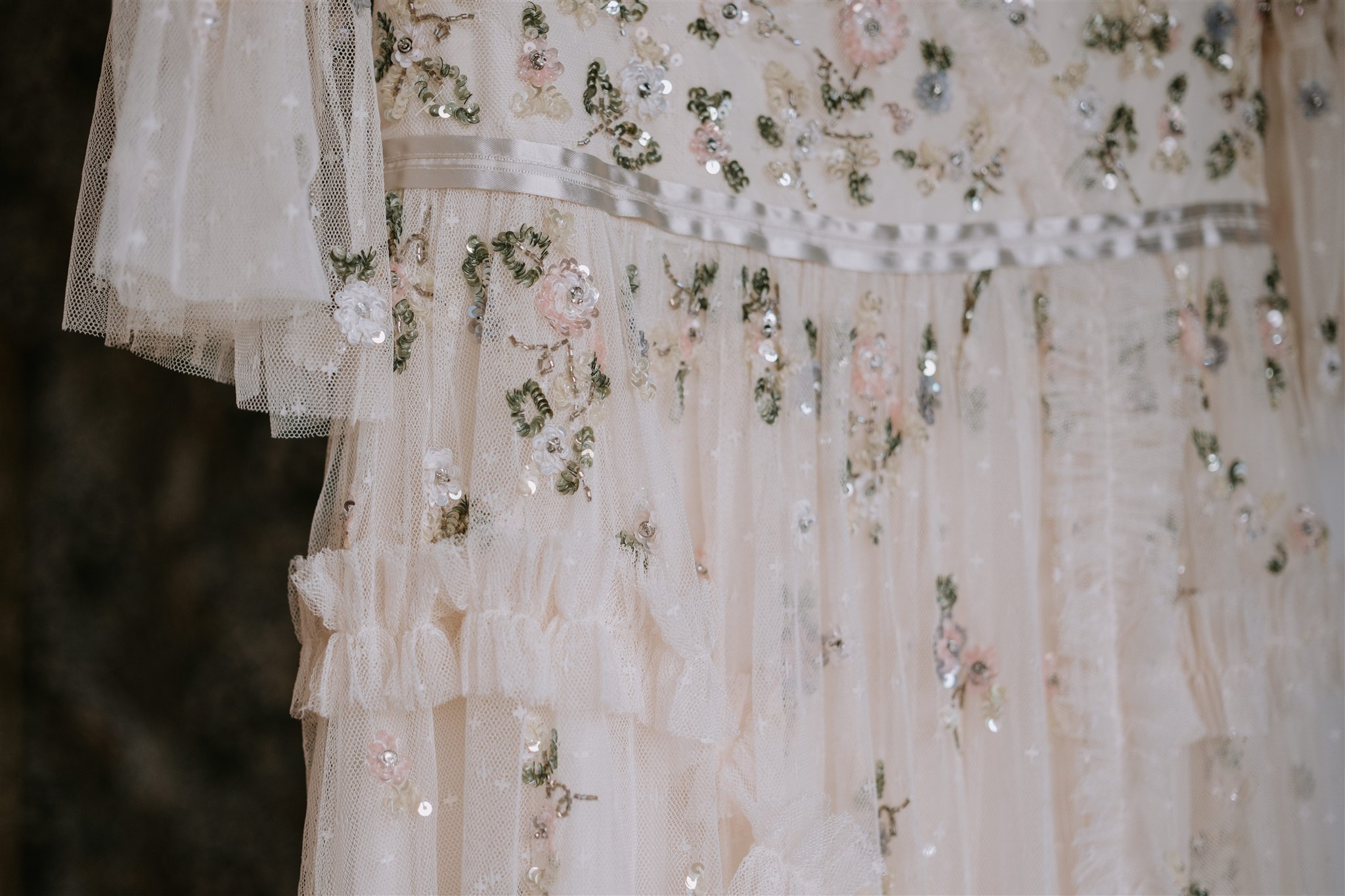 J’étais ravie de ce choix : d’abord parce que j’ai toujours un faible pour les partis pris audacieux, mais aussi parce que je suis moi-même une grande fan de la marque de sa robe, Needle & Thread. Je m’égare régulièrement sur leur site, à admirer leurs créations, en me désolant de n’avoir aucune occasion de porter ce genre de beauté. Ce sont ces petites similitudes inattendues entre vous et moi qui me font souvent penser que nos chemins ne se croisent jamais par hasard.