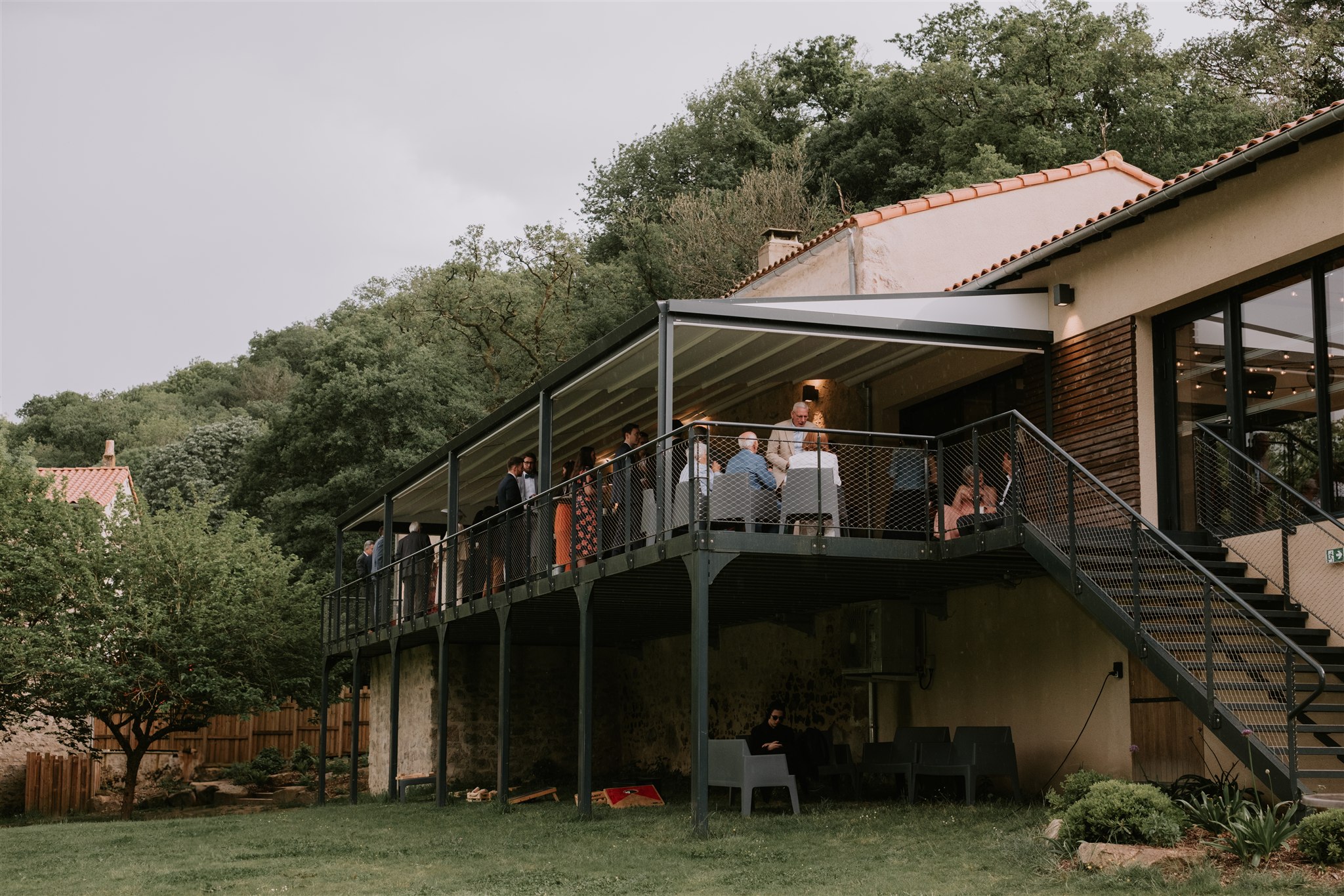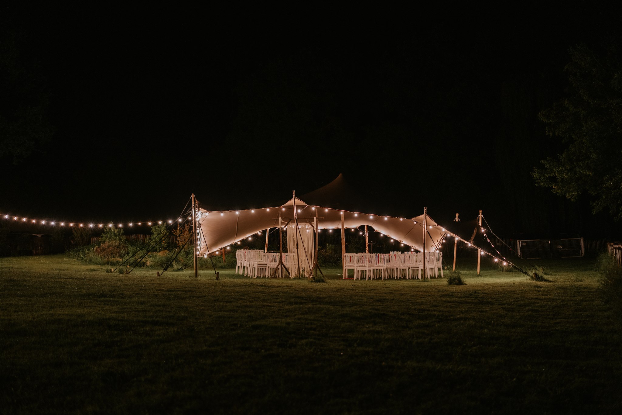 Heureusement pour nous, le domaine du Moulin de Grenon possède une terrasse couverte dont les côtés peuvent être protégés par du tissu étanche. La fête a donc pu continuer sans que personne ne soit mouillé.