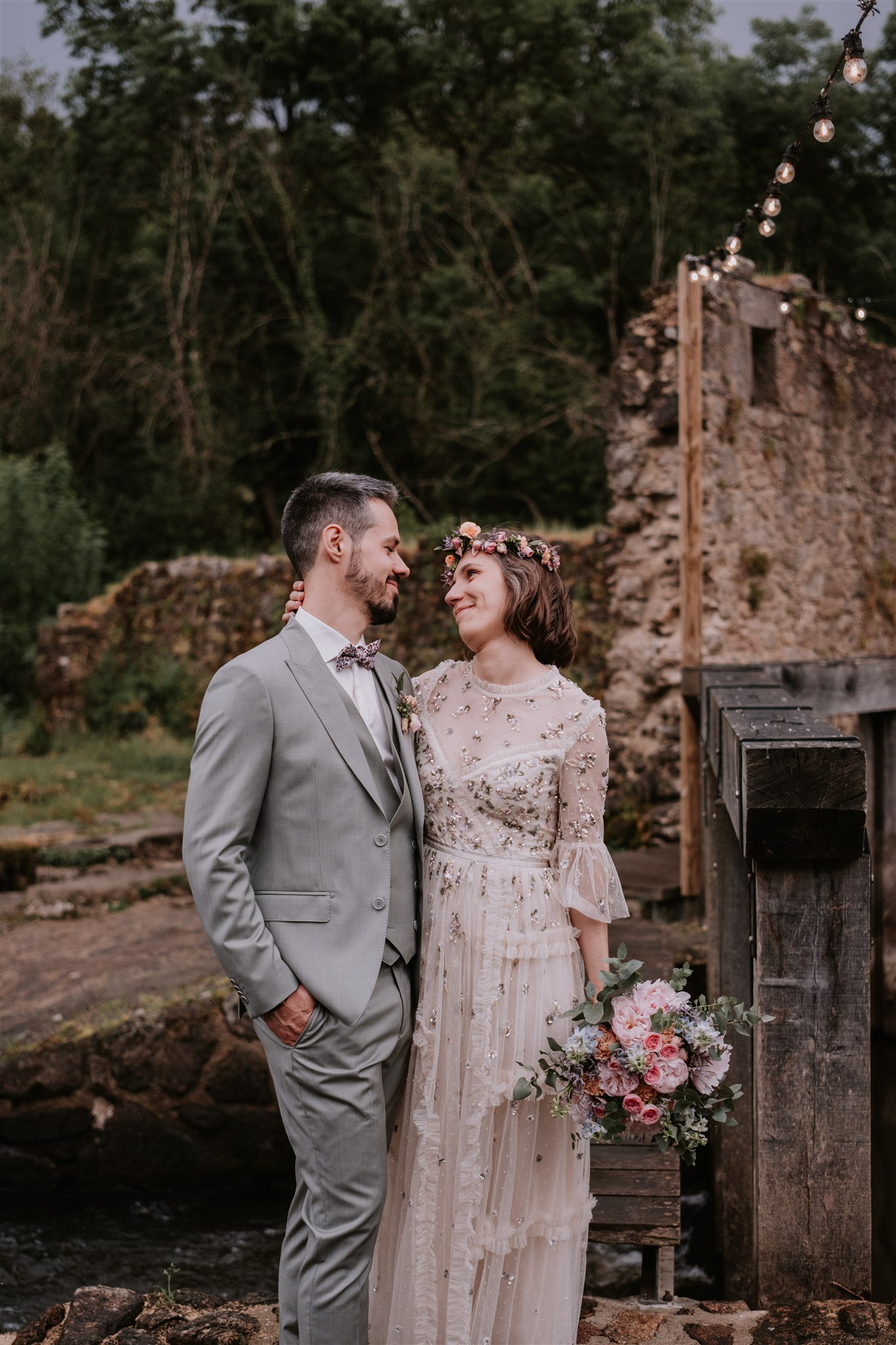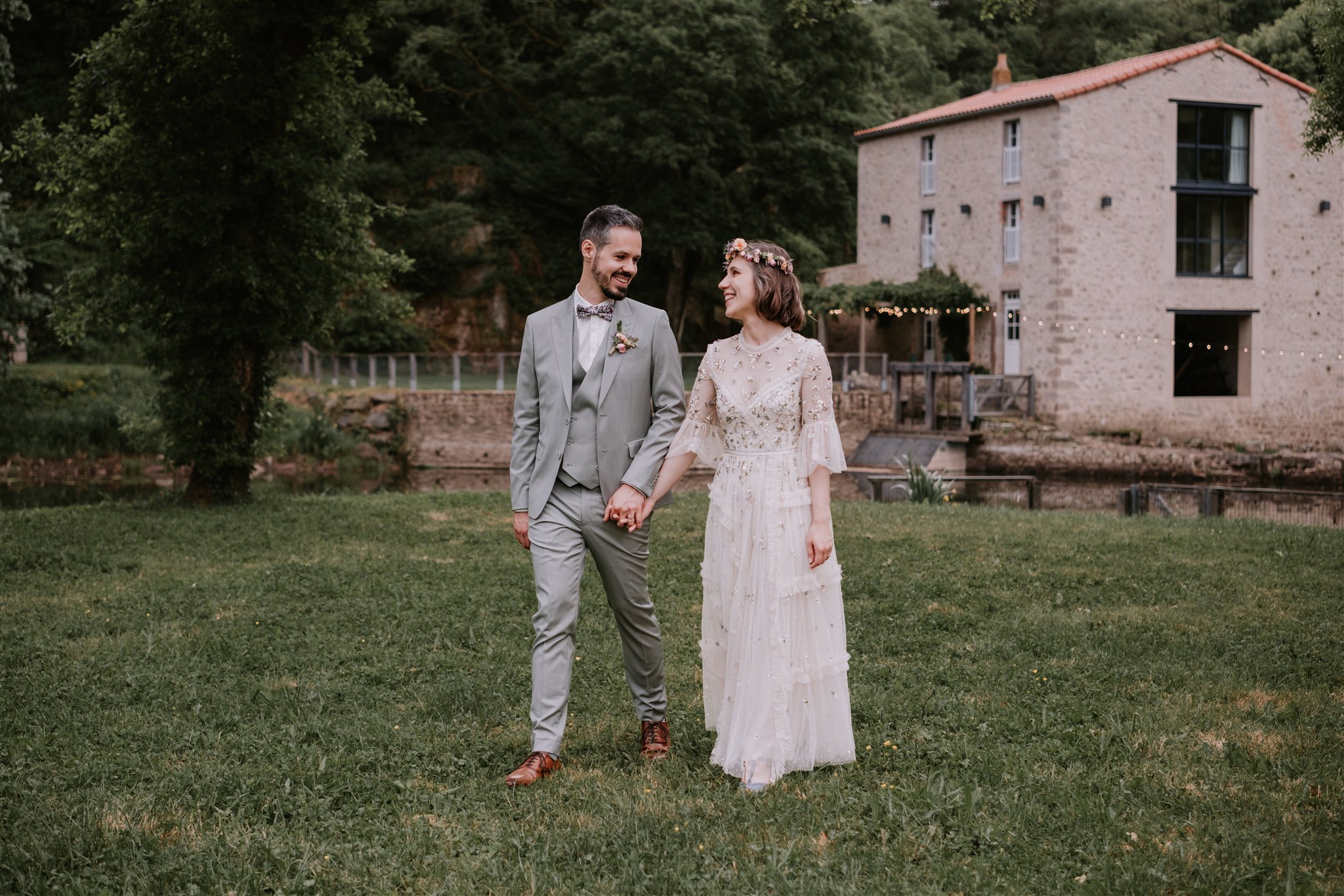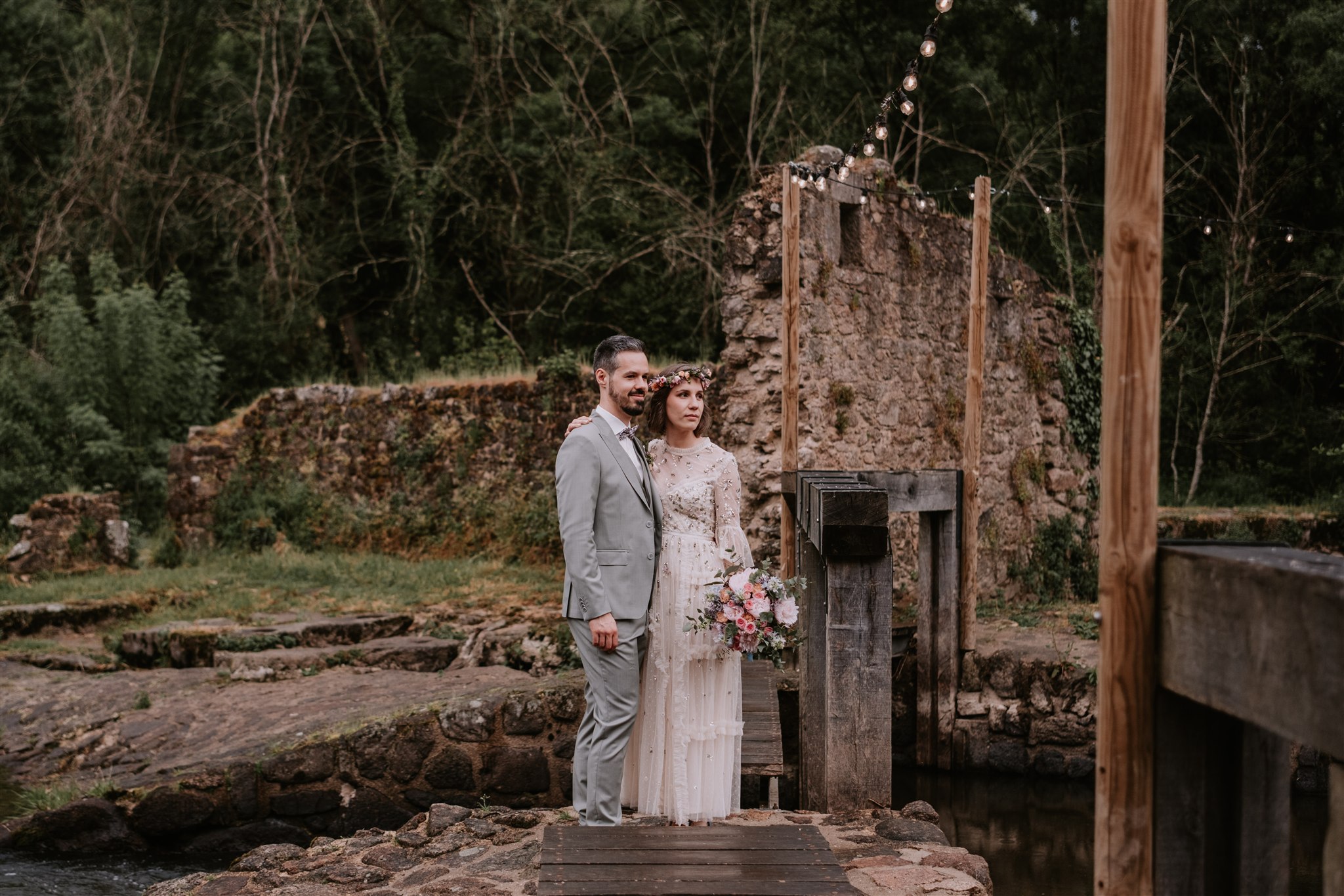 De l’autre côté du barrage, nous avons également profité d’un espace permettant d’avoir le moulin en arrière-plan, tout en étant suffisamment à l’écart des invités pour éviter que les mariés ne deviennent le spectacle principal.