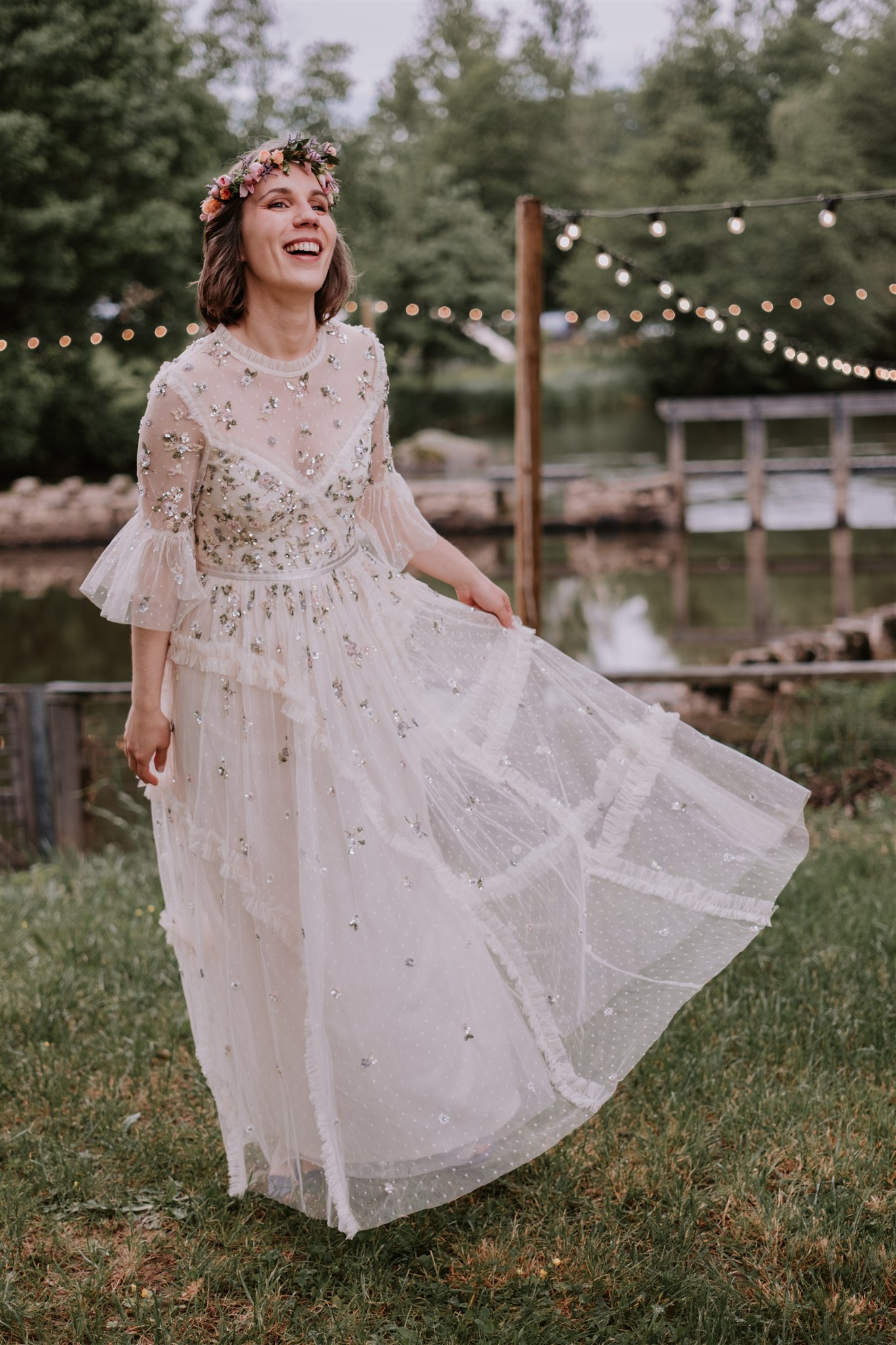 Il faut dire que cette robe n’avait rien de la robe blanche traditionnelle : pour Clem, il y avait des perles, des fleurs et des couleurs !